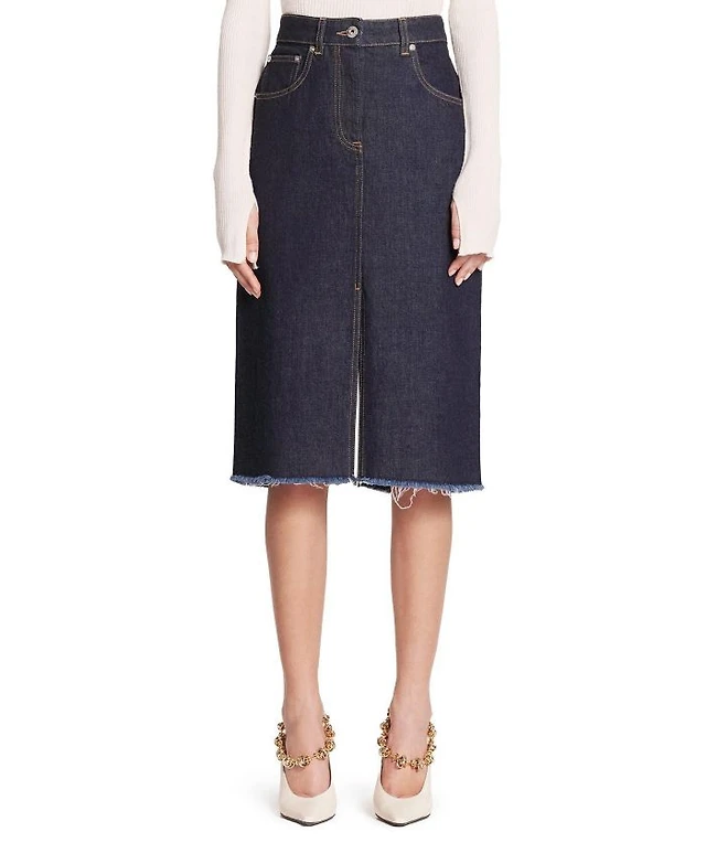 High Waisted Medium Wash Front Slit Maxi Denim Skirt