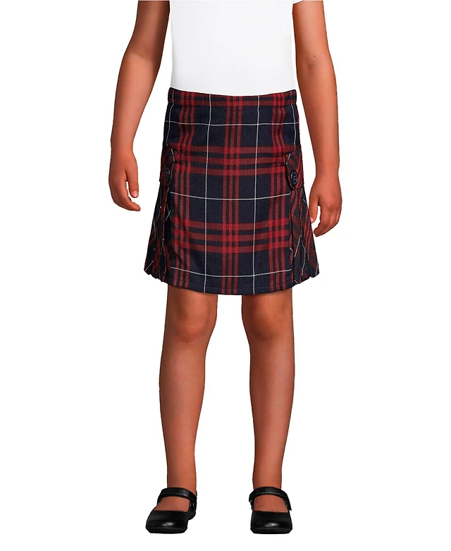 Lands' End Big Girls School Uniform Slim Side Pleat Plaid Skort Above the Knee