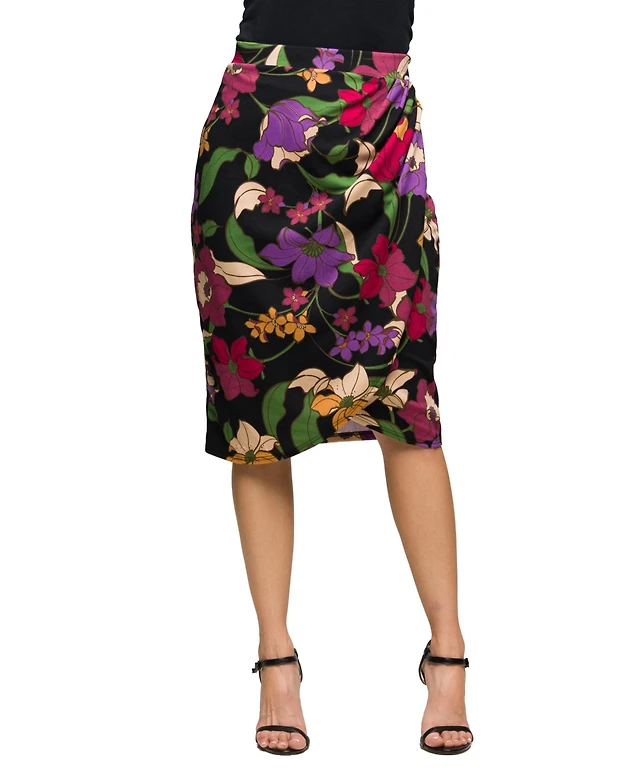 Petal and Pup Women's Kenna Satin Midi Skirt - Navy Floral Xl