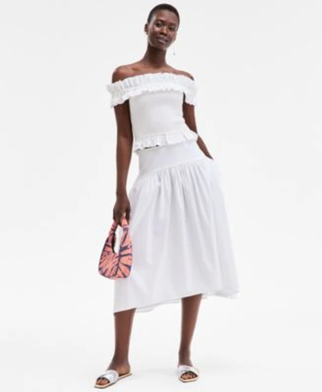 On 34th Womens Off The Shoulder Smocked Top Drop Waist Midi Skirt Exclusively At Macys