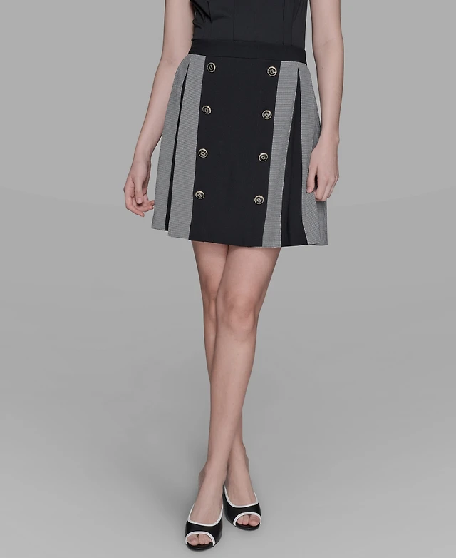 Eloquii Women's Plus Mixed Media Pleated Skirt