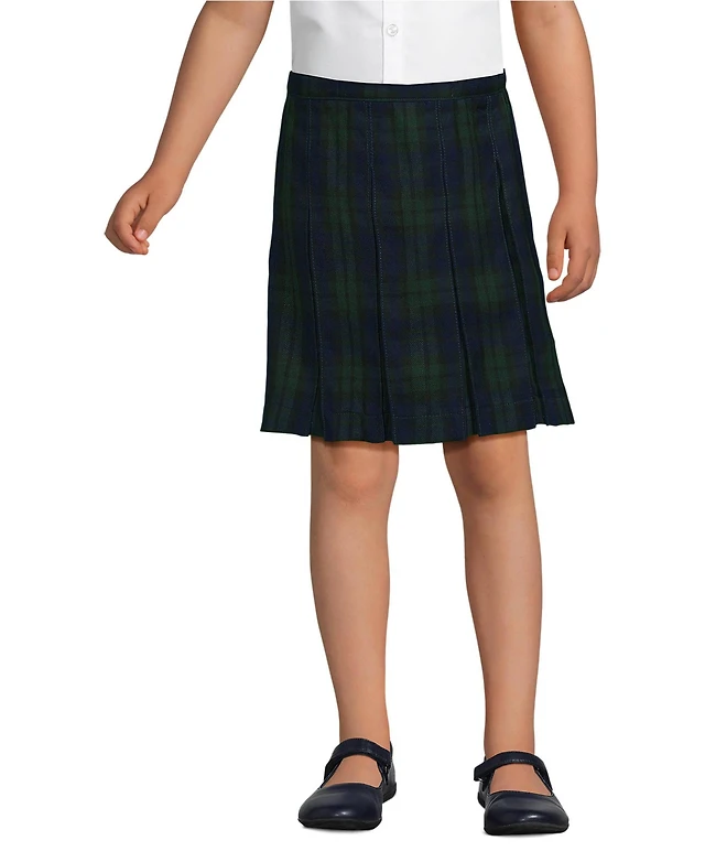 Lands' End Little Girls School Uniform Plaid Pleated Skirt Below the Knee