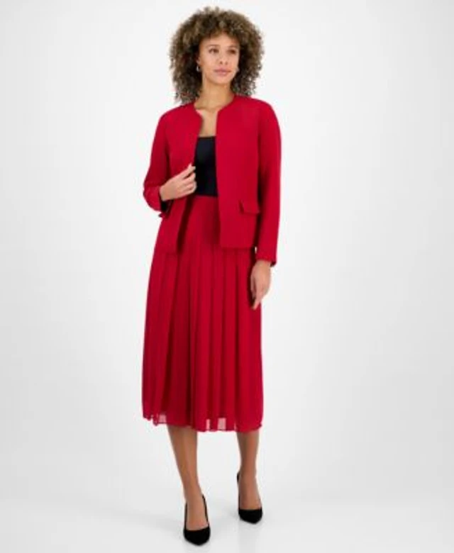 Kasper Womens Collarless Open Front Blazer Pleated Pull On Skirt