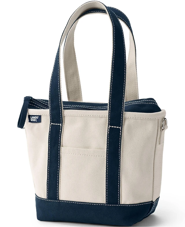 Lands' End Small 3 Pocket Zip Top Long Handle Canvas Tote Bag