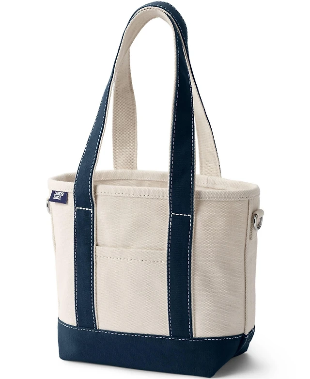 Lands' End Small 3 Pocket Open Top Long Handle Canvas Tote Bag