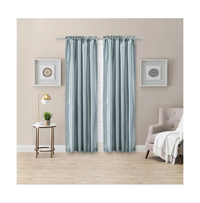 Ellis Curtain Luna Faux-Silk Rod Pocket/Back Tab Tailored Pairs - 100x84", Blue