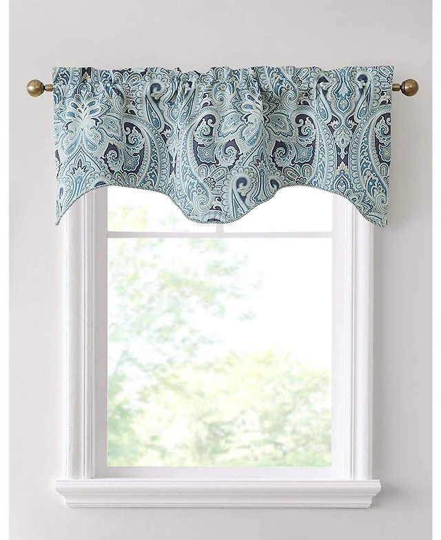 Hlc.me Paris Paisley Thermal Insulated Decorative Rod Pocket Short Scalloped Curtain Valance for Kitchen, Bathroom