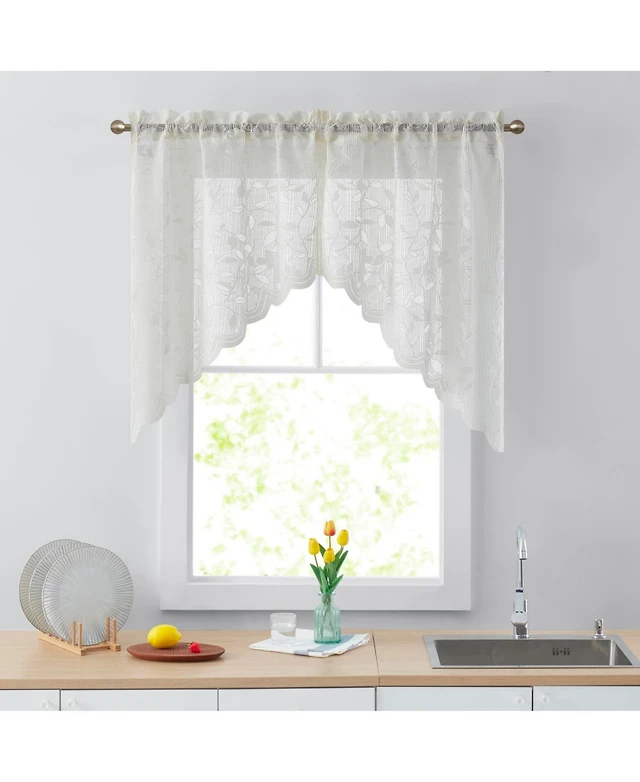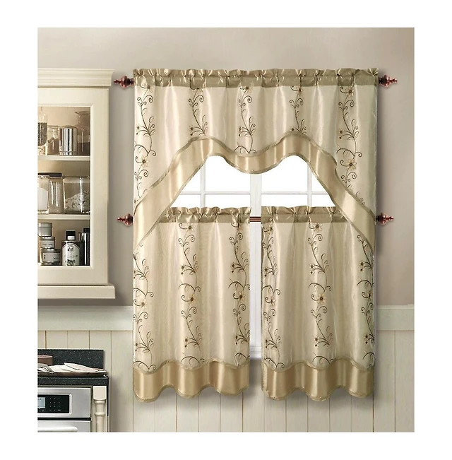 Kate Aurora Parisian Living Complete 3 Piece Lightweight Sheer Cafe Kitchen Curtain Tier & Valance Set