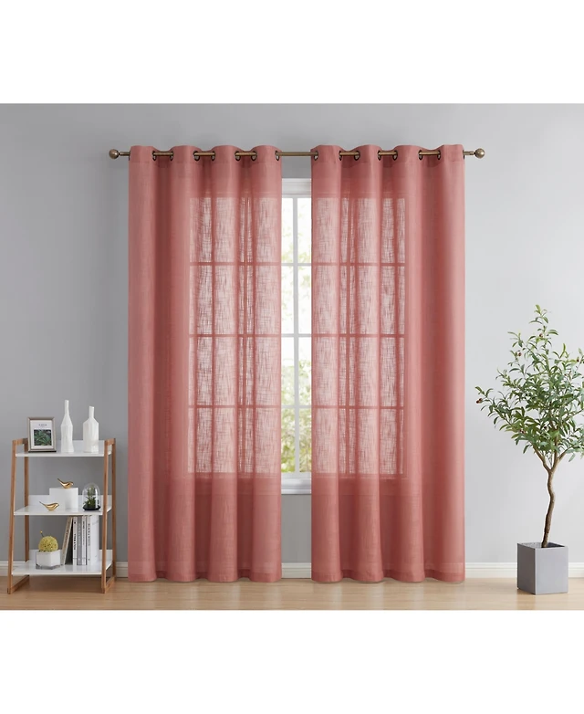 Hlc.me Emily Faux Linen Semi Sheer Transparent Rod Pocket Back Tab Lightweight Window Curtains Wide Panels