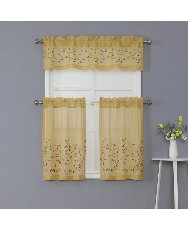 Hlc.me Audrey Embroidered Sheer Voile Window Curtain Short Rod Pocket Tiers for Kitchen, Bedroom