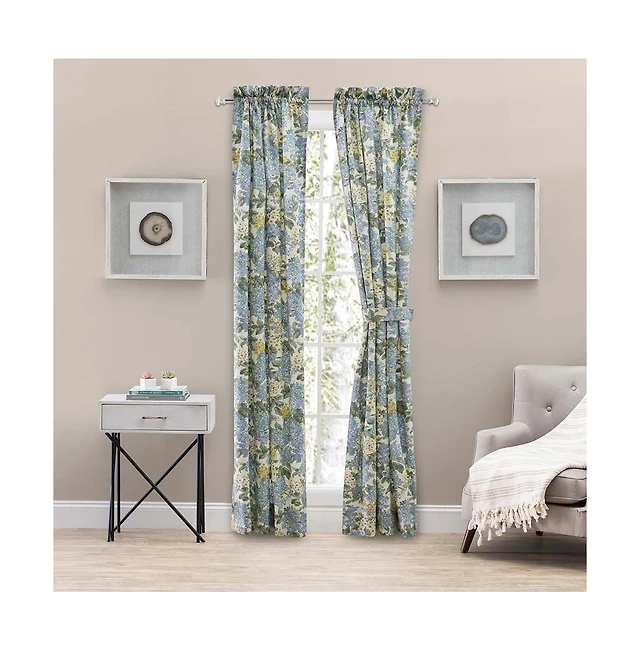 Ellis Hydrangea Classic Pattern Printed 1.5 X22 Rod Pocket Window Tailored Tiers 68 X22x30 X22 Blue