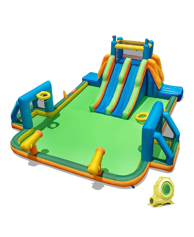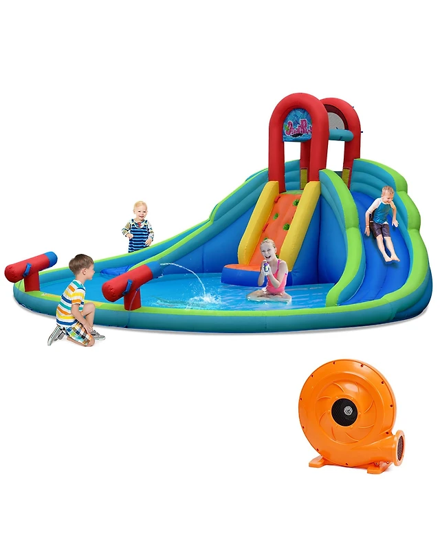 Gymax Inflatable Water Slide w/ 2 Long Slides Pool Climbing Walls 1100 W Blower
