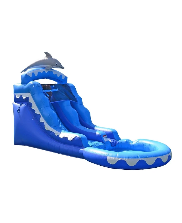 HeroKiddo 15 Ocean Shark Commercial Grade Inflatable Water Slide with Attached Splash Pool (No Blower Included)