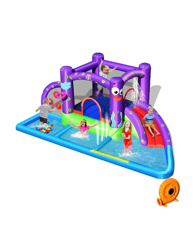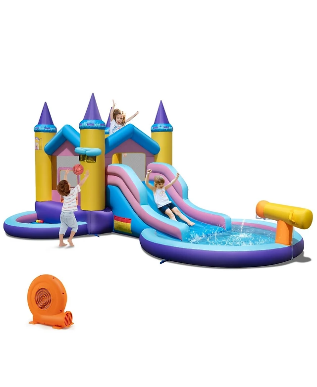 7-In-1 Water Slide Park with Splash Pool and Water Cannon with 680W Blower