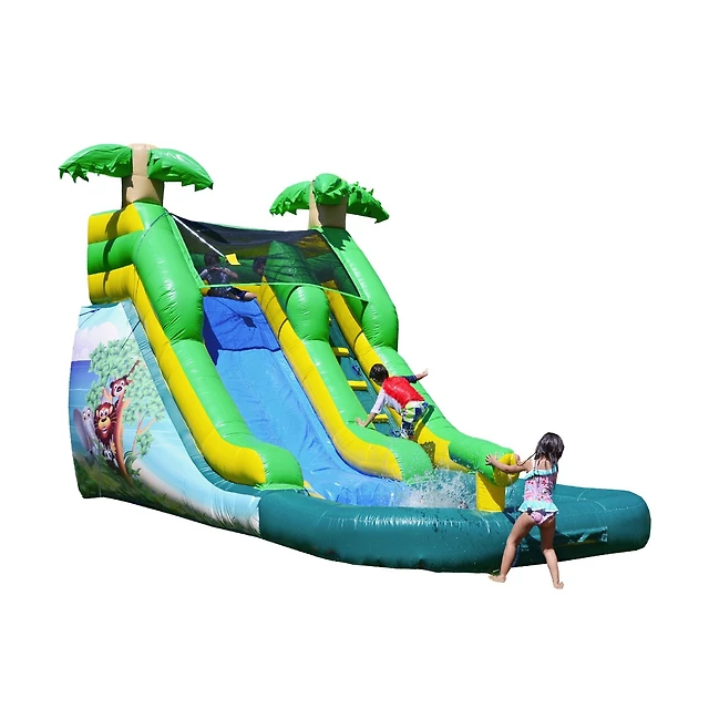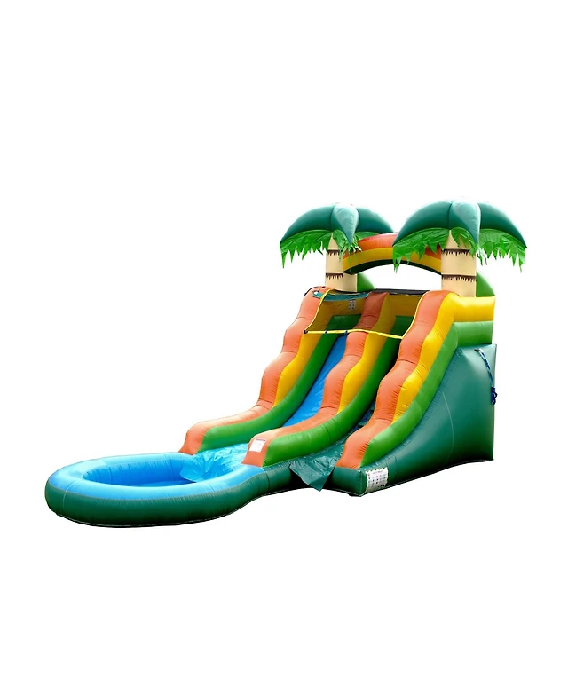 HeroKiddo 16 Purple Tropical Inflatable Water Slide with Attached Pool (No Blower Included), Commercial Grade, Wet Dry Use