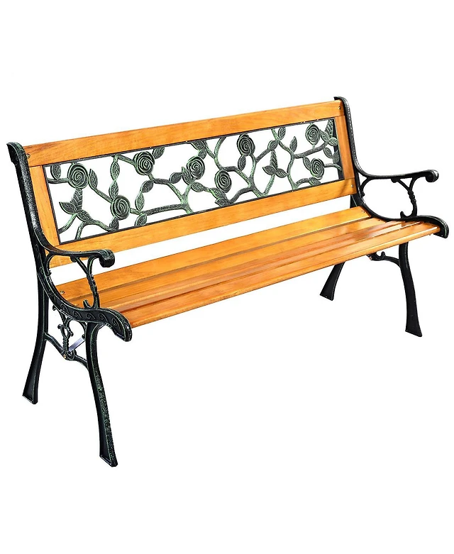 Costway 49 1/2'' Patio Park Garden Bench Porch Path Chair Outdoor Deck Cast Iron Hardwood