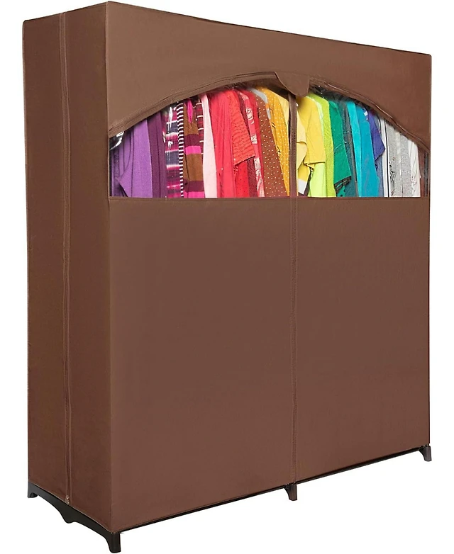 Slickblue Wood Finish Bedroom Wardrobe Armoire Cabinet with Shelves and Hanging Rod