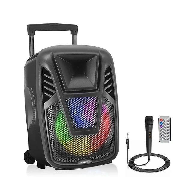 Pyle Bluetooth Pa Speaker & Microphone System - Portable Karaoke Speaker with Led Lights, Fm Radio & MP3/Usb Support