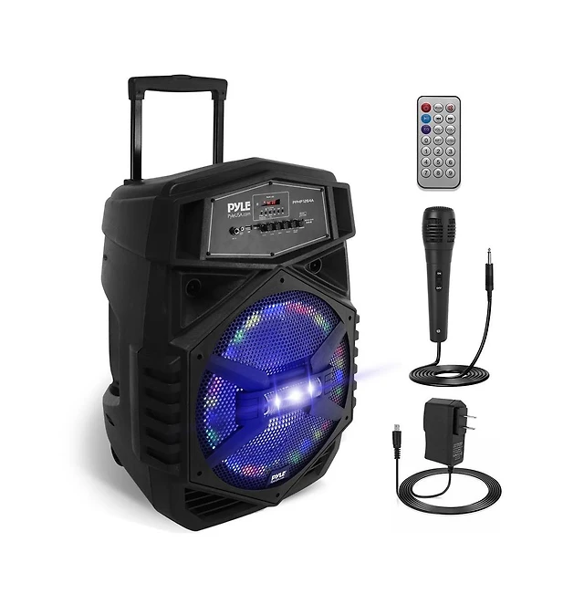 Pyle 12" Portable Bluetooth Pa Speaker System - Karaoke Speaker with Dj Led Lights, Usb/Fm/Bt/Aux, Remote Control