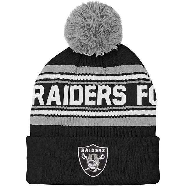 Youth Black Las Vegas Raiders Jacquard Cuffed Knit Hat with Pom