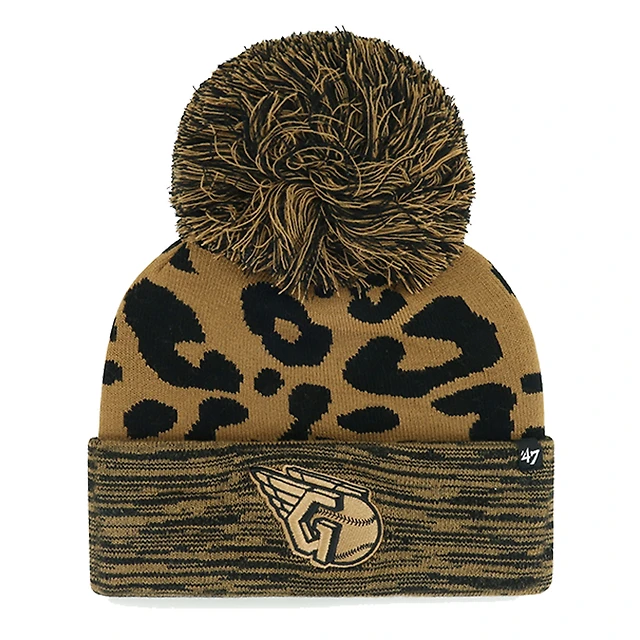 Women's '47 Cleveland Guardians Leopard Rosette Cuffed Knit Hat with Pom