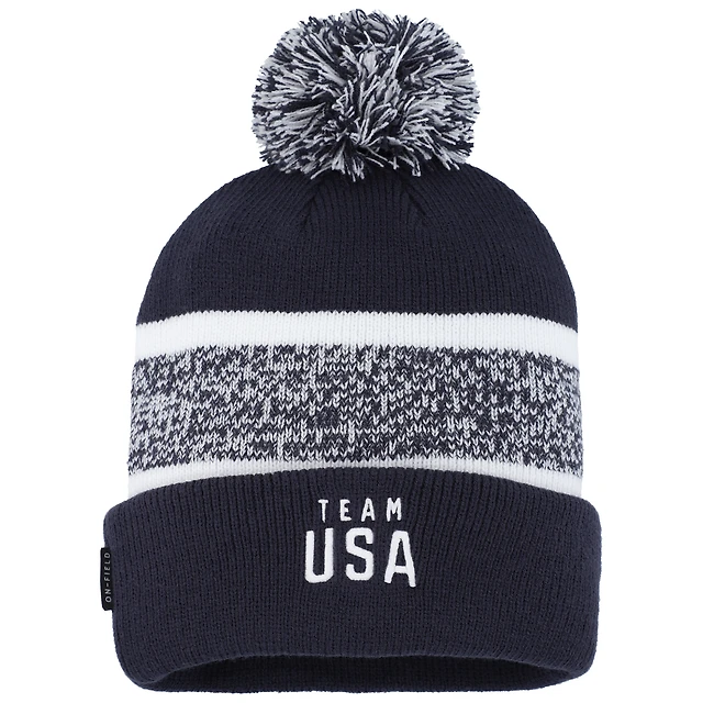 Youth Nike Navy Team USA Peak Cuffed Knit Hat with Pom