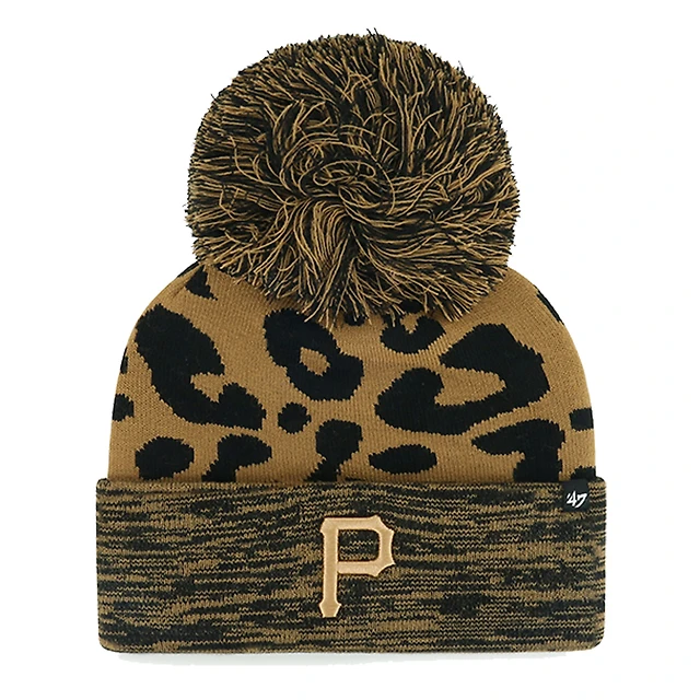 Women's '47 Pittsburgh Pirates Leopard Rosette Cuffed Knit Hat with Pom
