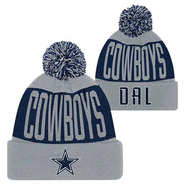 Youth Navy/Gray Dallas Cowboys Bevel Cuffed Knit Hat with Pom