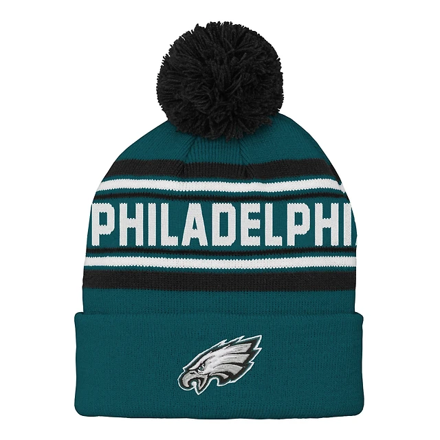 Youth Midnight Green Philadelphia Eagles Jacquard Cuffed Knit Hat with Pom