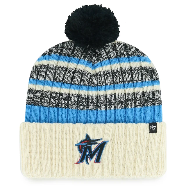 Men's '47 Natural Miami Marlins Tavern Cuffed Knit Hat with Pom