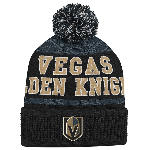 Youth Vegas Golden Knights Black Jacquard Cuffed Knit Hat with Pom