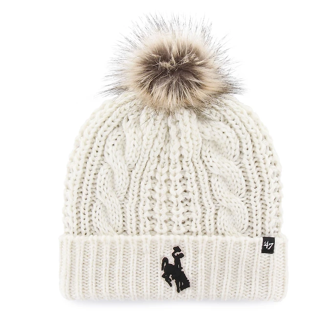Women's '47 White Wyoming Cowboys Meeko Cuffed Knit Hat with Pom