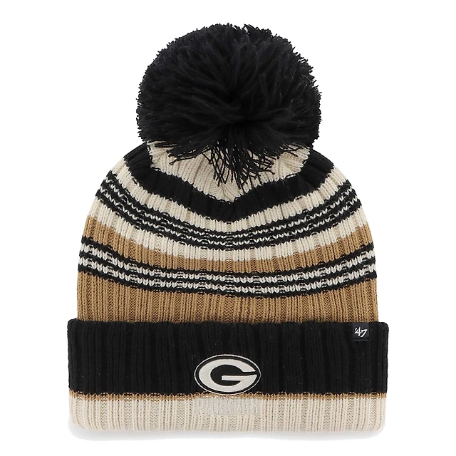 Women's '47 Natural Green Bay Packers Barista Cuffed Knit Hat with Pom