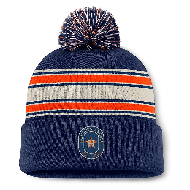 Men's Fanatics Navy Houston Astros Fundamental Patch Cuffed Knit Hat with Pom