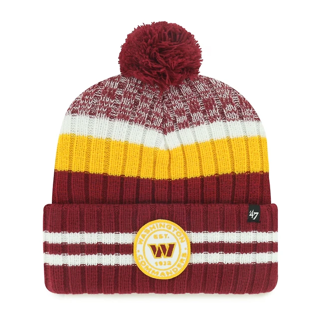 Youth Burgundy Washington Commanders Jacquard Cuffed Knit Hat with Pom