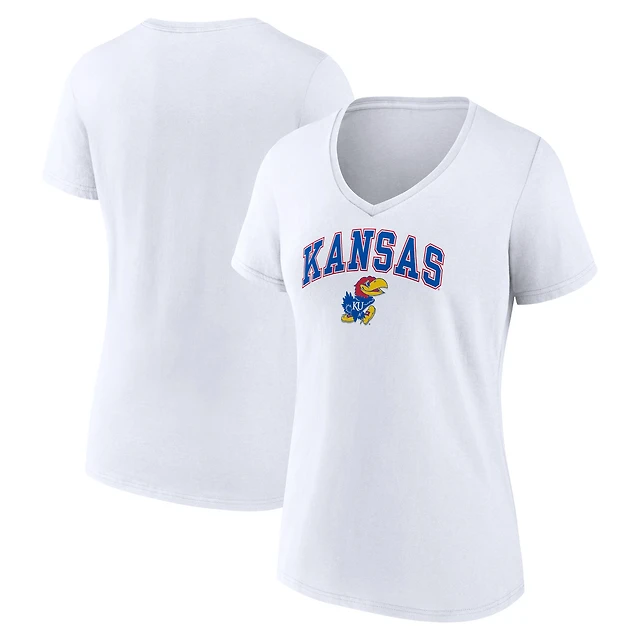 Women's Fanatics White Kansas Jayhawks Campus V-Neck T-Shirt
