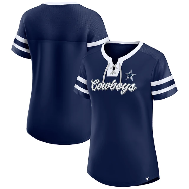 Fanatics Women's Navy Seattle Seahawks Play Script Lace-Up T-Shirt