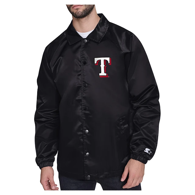 Men's Starter Black Texas Rangers Shield Logo Raglan Coaches Full-Snap Jacket