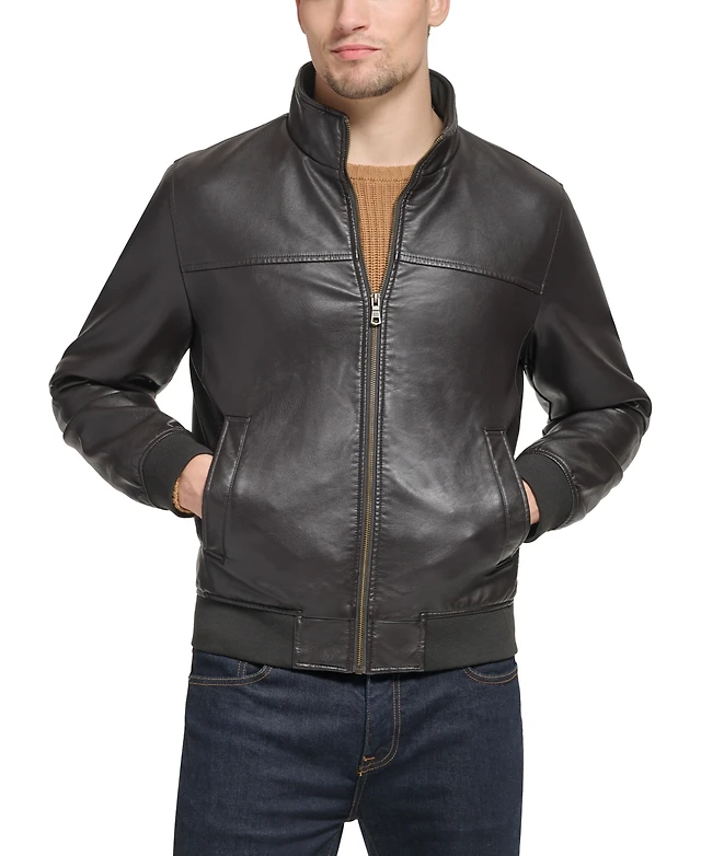Dkny Men's Smooth Faux-Leather Bomber Jacket