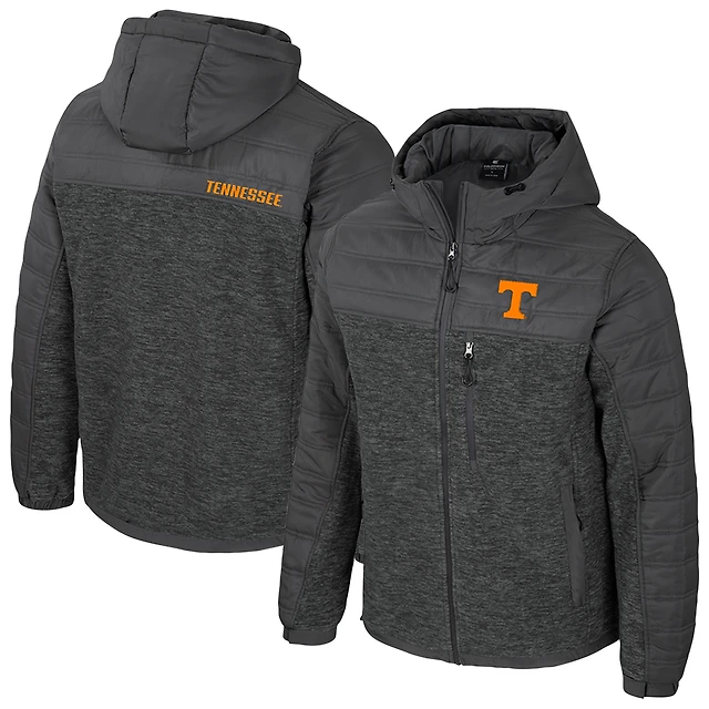 Men's Colosseum Charcoal Tennessee Volunteers Nightman Full-Zip Hoodie Puffer Jacket