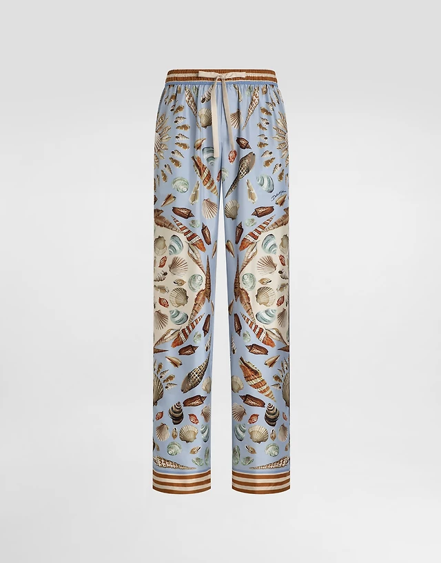 Shell-print silk twill trousers
