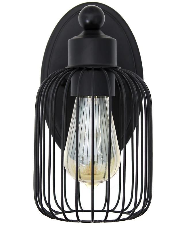 Jonathan Y Kiawah 11" 1-Light Vintage Coastal Rattan/Metal Swing Arm Led Sconce, Black/Natural