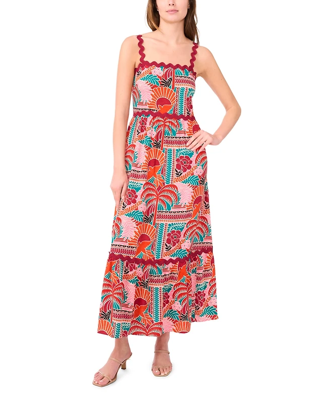 Tommy Hilfiger Petite Long-Sleeve Chiffon Combo Midi Dress