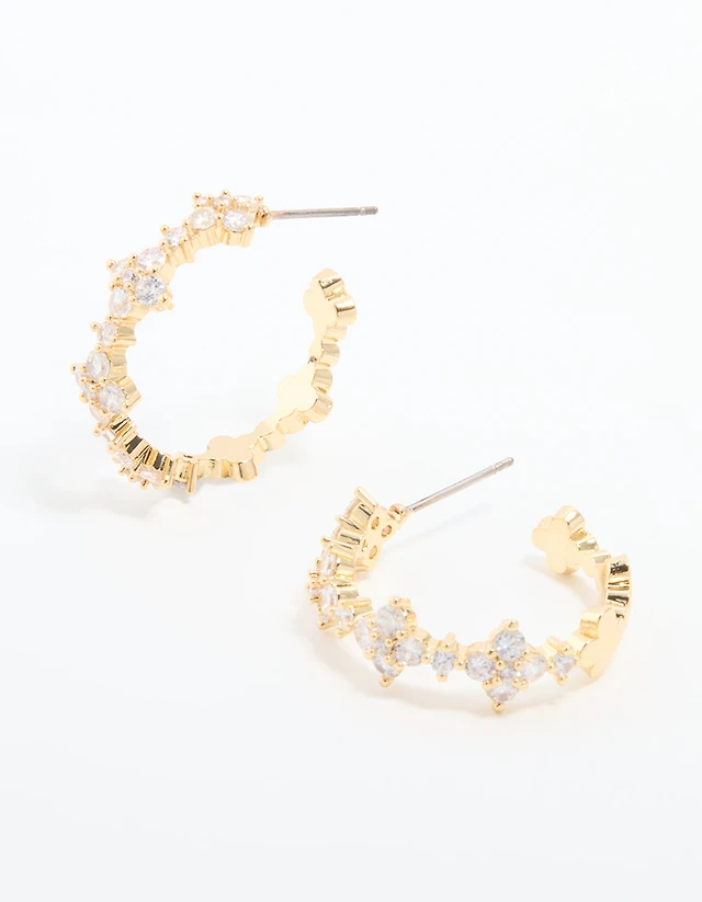 Gold Plated Cubic Zirconia Flower Large Round Hoop Earrings