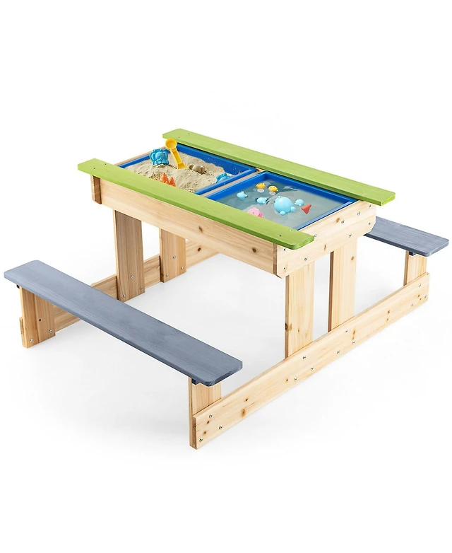 Gymax 3-in-1 Kids Picnic Table Outdoor Wooden Water Sand Table w/ Play Boxes