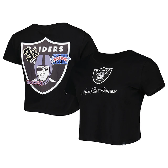 Fanatics Women's Black/White Las Vegas Raiders Boxy Color Split Cropped T-Shirt