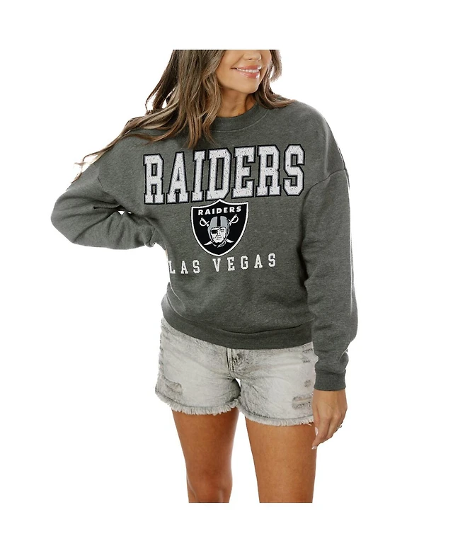 Men's Antigua Heather Black Las Vegas Raiders Saga Long Sleeve Hoodie T-Shirt