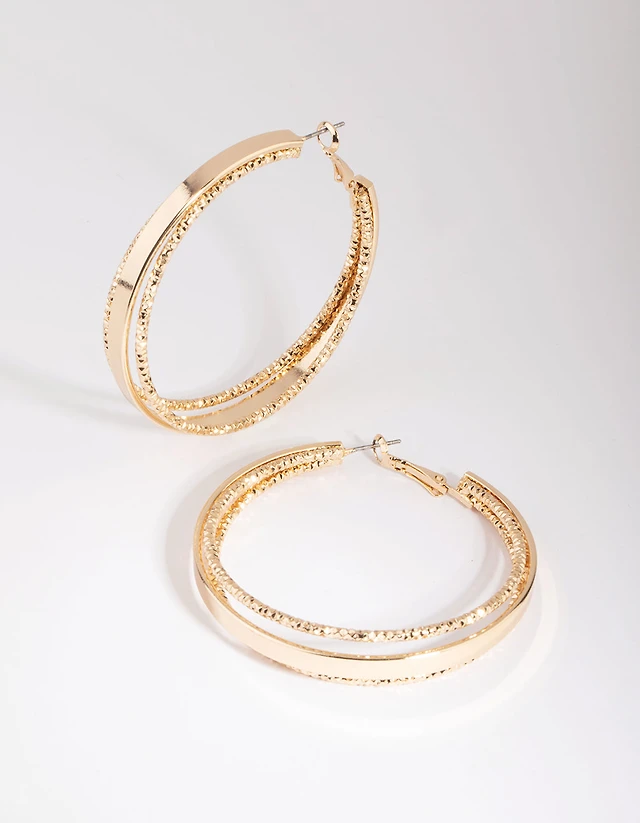 Gold Orange Triple Wrapped Disc Drop Earrings
