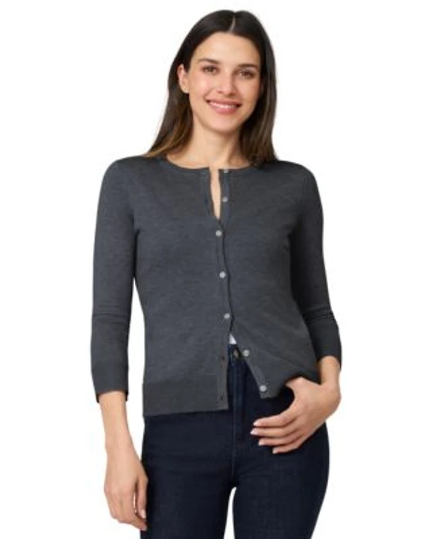 Melissa Paige Women's Ottoman-Rib 3/4-Sleeve Crewneck Cardigan