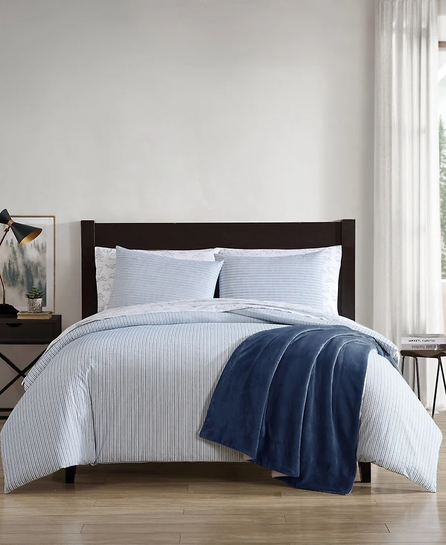 London Fog Stripe Flannel 3-Pc. Duvet Cover Set, King